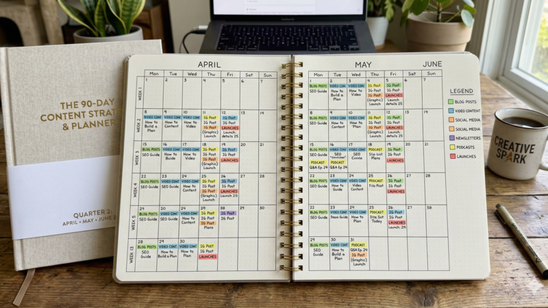 A ready-to-use 90-day content calendar with themed weeks, post types, and platform-specific suggestions. Just fill in and start posting.