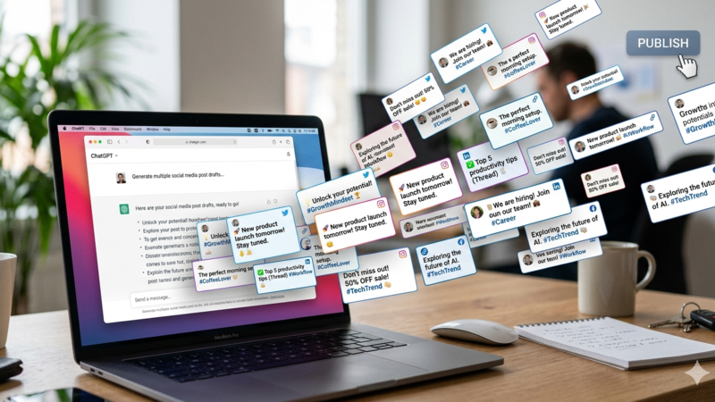 500 social-media-specific ChatGPT prompts covering Instagram, TikTok, LinkedIn, X, and more. Copy, paste, customise, and post.