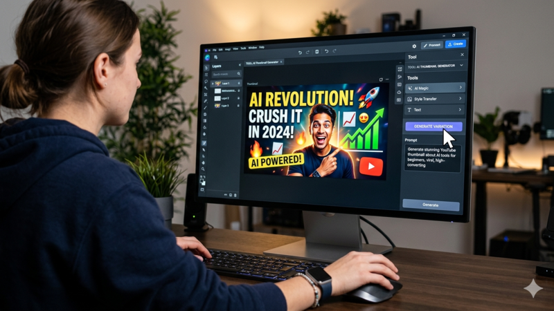 Use AI to generate high-CTR thumbnails for YouTube, blogs, and social posts. Covers design psychology, A/B testing, and the best generation tools.
