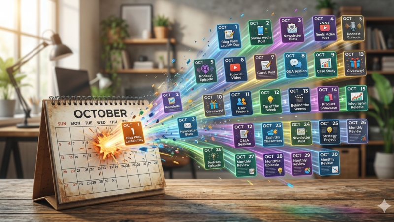 A complete system for planning 30 days of content in a single sitting. Includes templates, brainstorming techniques, and batch-creation workflows.