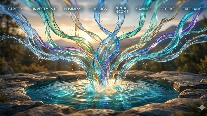 Discover multiple revenue streams powered by AI content. Covers digital products, print-on-demand, stock assets, freelancing, and content licensing.